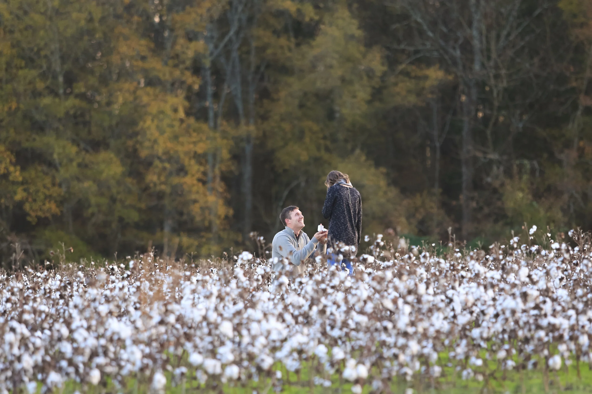 I felt almost the same way right before the proposal happened. It was serious, and it was real. No swelling music, no tears, no anything. Just two people standing in a cotton field [with an audience with cameras behind a bush]. Our self timer camera was set to take pictures every 3 seconds.